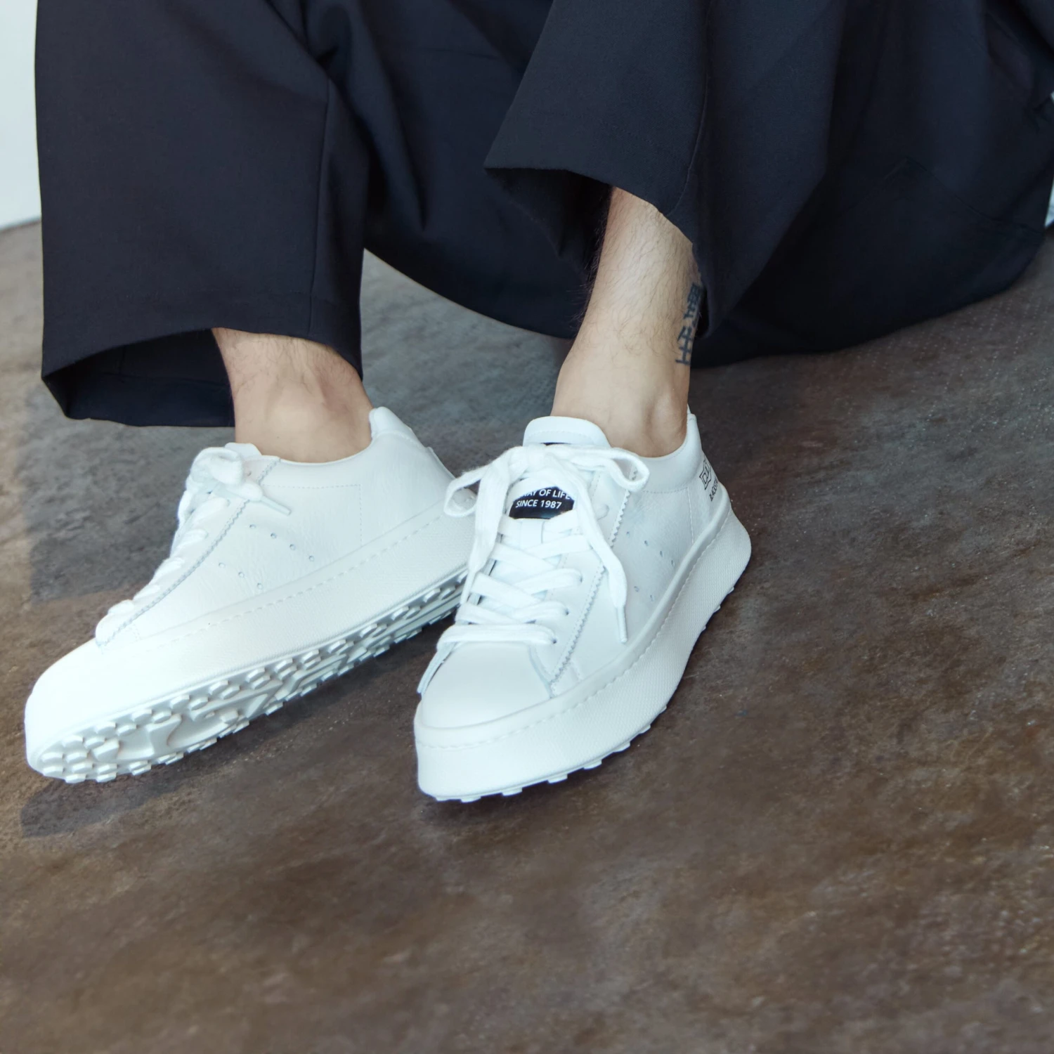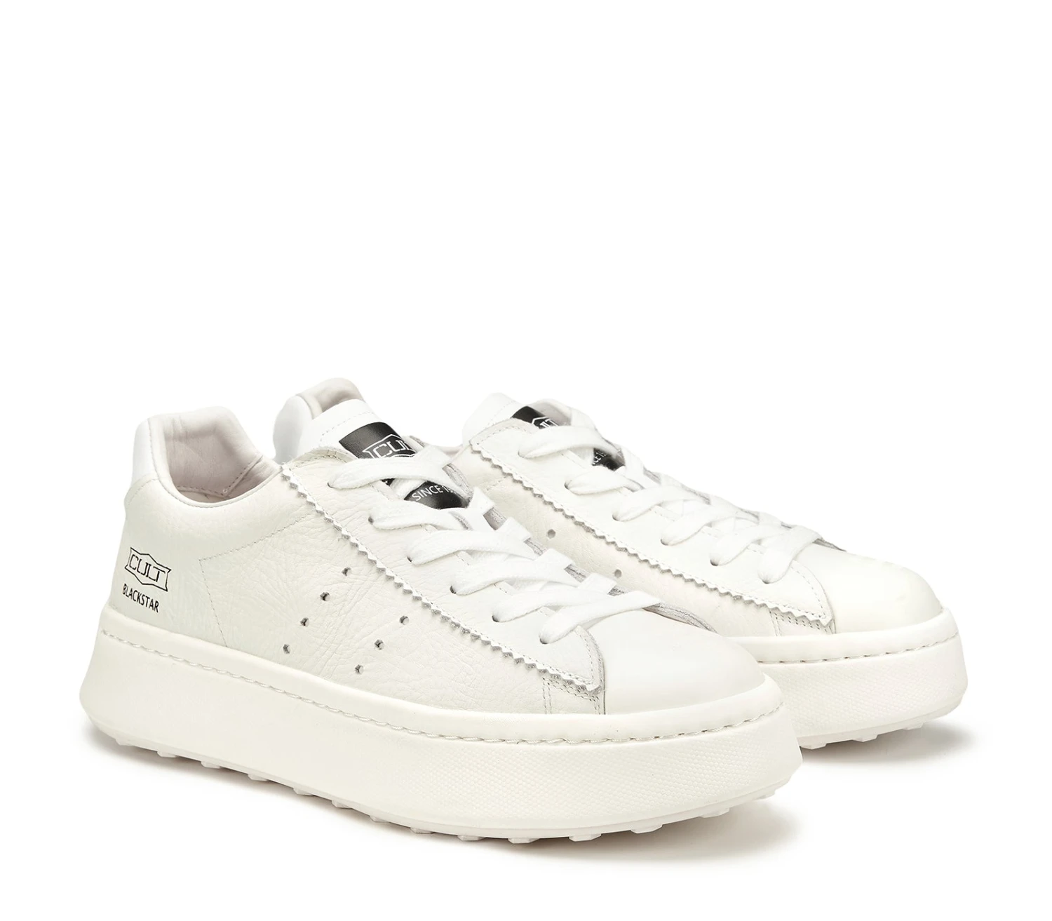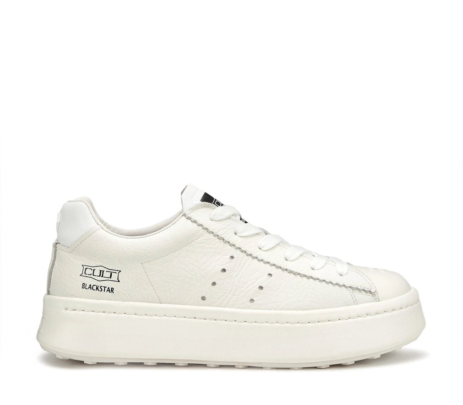 Design contemporaneo per le nuove sneakers in pelle bottalata, firmate CULT Man. La suola voluminosa ne definisce l’attitudine sportive-casual, mentre i dettagli a contrasto, come l’iconico logo del brand, lo rendono un modello inconfondibile.