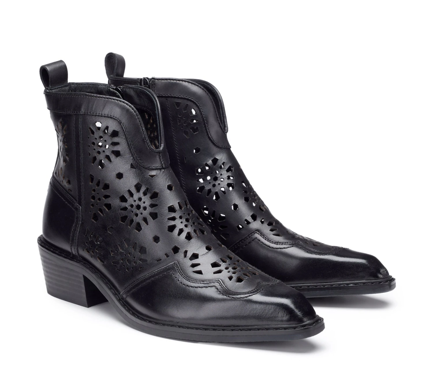 Lo stivaletto texano DOLORES di CULT in versione estiva è un must-have cool e contemporaneo. Caratterizzato da una lavorazione traforata unisce stile e artigianalità, creando un look audace e raffinato allo stesso tempo. Realizzato in vera pelle di color nero, è perfetto per aggiungere un tocco rock e sofisticato a qualsiasi outfit.