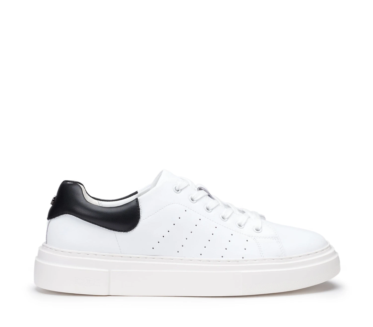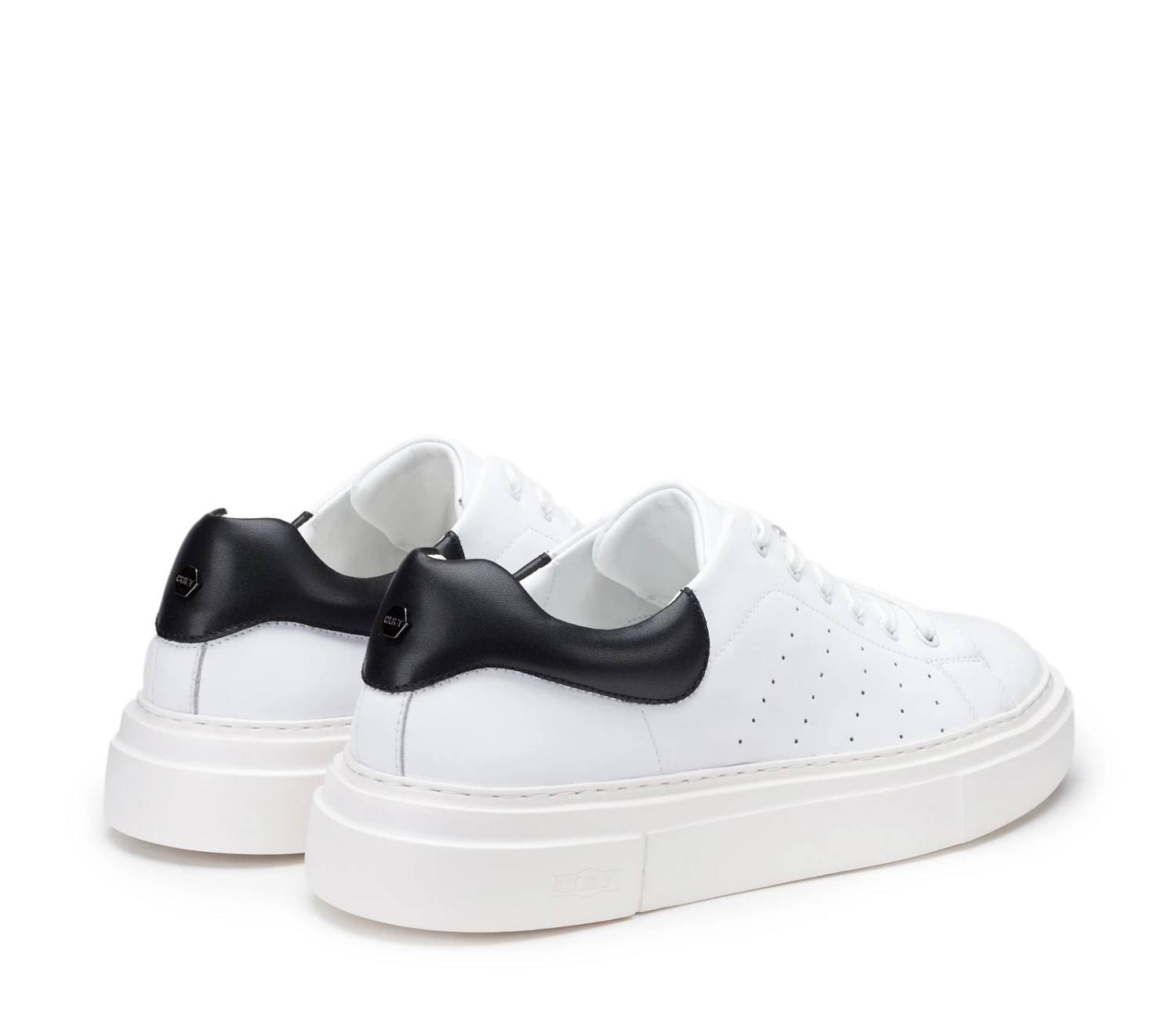 Le sneakers JOVI di Cult presentano un design minimalista e moderno, caratterizzato da una tomaia in pelle bianca con fori traspiranti e contrafforti a contrasto in color nero per un comfort ottimale. Il logo “CULT 1987” sulla parte laterale aggiunge un tocco distintivo ed elegante. La suola spessa garantisce ammortizzazione e supporto, perfetta per un look casual e versatile.