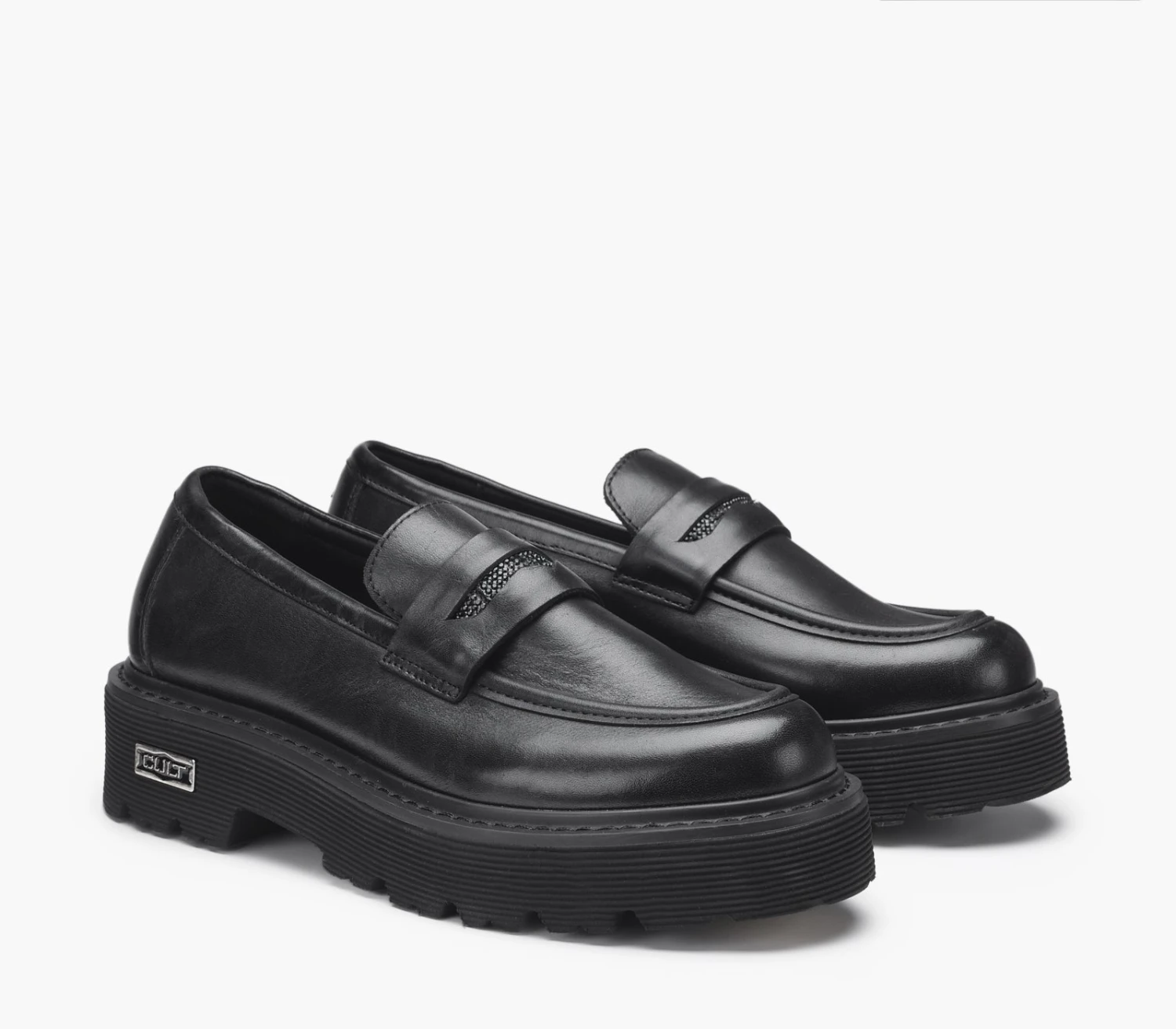 Cult reinterpreta i classici mocassini in pelle su un nuovo piano di stile. La suola chunky extralight a carrarmato, la tomaia impreziosita da dettagli in strass neri sur tone sulla mascherina, l’esagono e la targhetta metallici con il logo del brand rendono questo modello estremamente glam. Personalità urbana grintosa, progettata per offrire leggerezza e resistenza tutto il giorno.