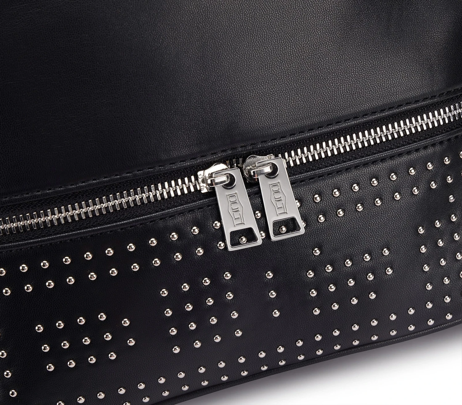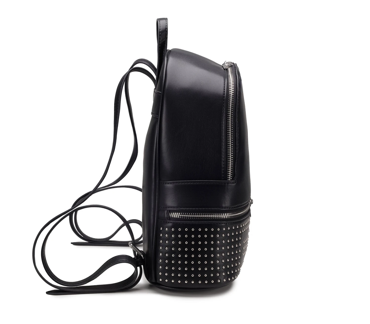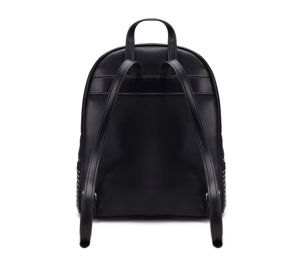 Lo zaino FIONA in ecopelle nera firmato CULT si distingue per la sua linea minimal che conferisce un aspetto moderno e decisamente glam-rock. I dettagli metallici come le mini borchie silver, aggiungono al design un elemento di stile. Presenta una tasca esterna frontale con chiusura a zip e bretelle regolabili. Perfetto per chi cerca un accessorio di tendenza, dal gusto audace e contemporaneo. Dimensioni: 25x29x10.