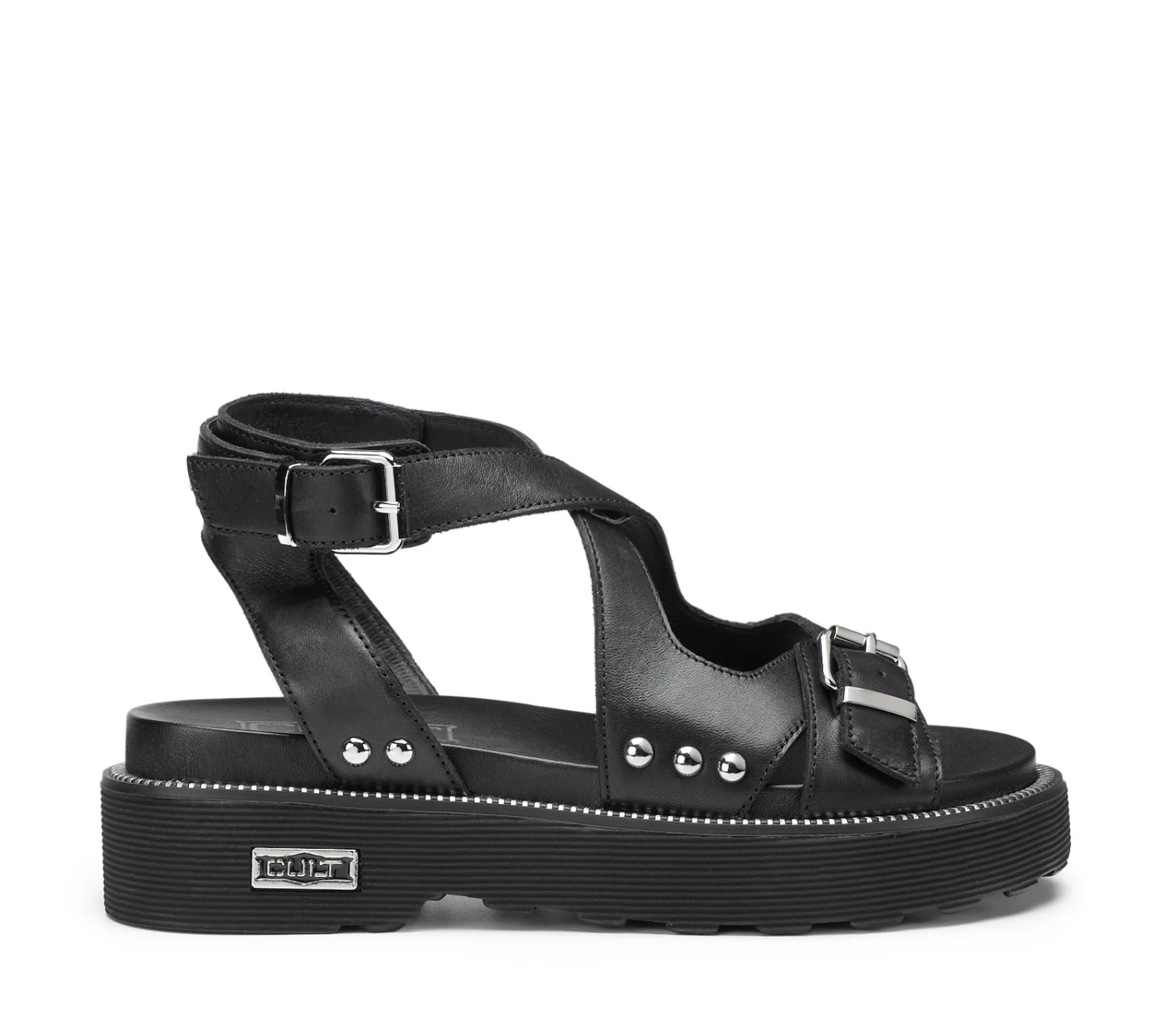 Originali e dallo stile urban chic, questi sandali Ziggy firmati Cult. Chiusura tramite fibbie metalliche, fascette a intreccio su dorso del piede in pelle nera impreziosite da bubble studs argentati sui lati. Logo metallico con il nome del brand sulla suola, guardolo zip per un tocco di carattere e stile. Un paio di sandali da indossare tutti i giorni e perfetti da abbinare a un maxi dress estivo o a un paio di jeans crop ampi.