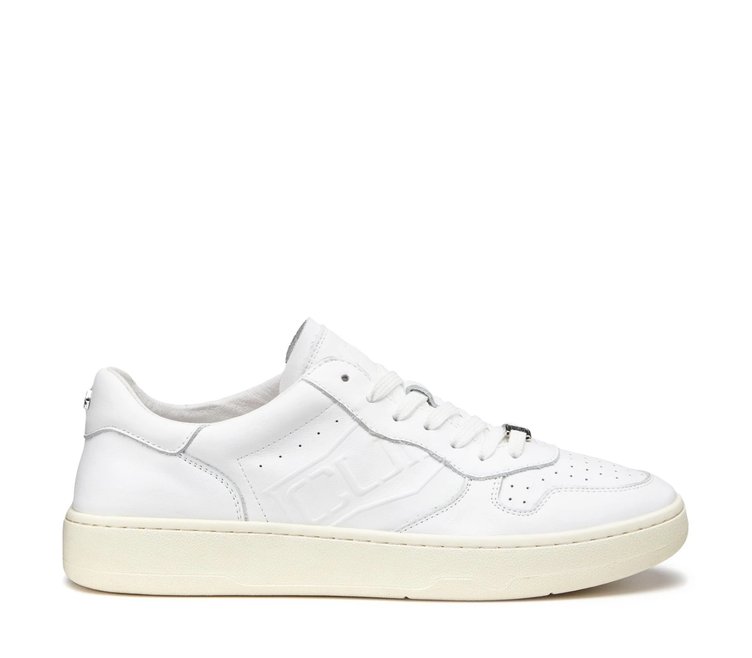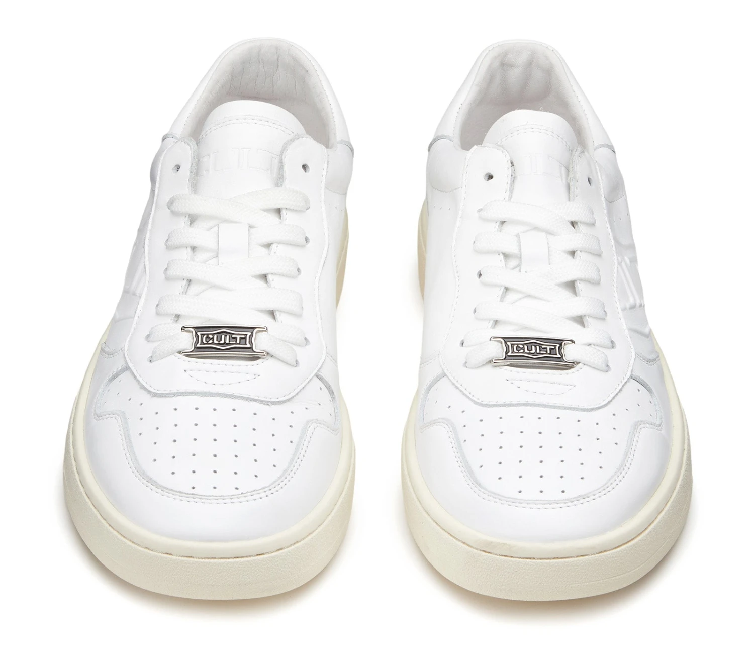 Le sneakers di Cult da uomo presentano una silhouette classica con tomaia bassa. Realizzate in pelle bianca, sono dotate di fori traspiranti e chiusura con lacci. Presentano il logo in rilievo sulla parte laterale della scarpa e l’iconica targhetta metallica sul davanti.