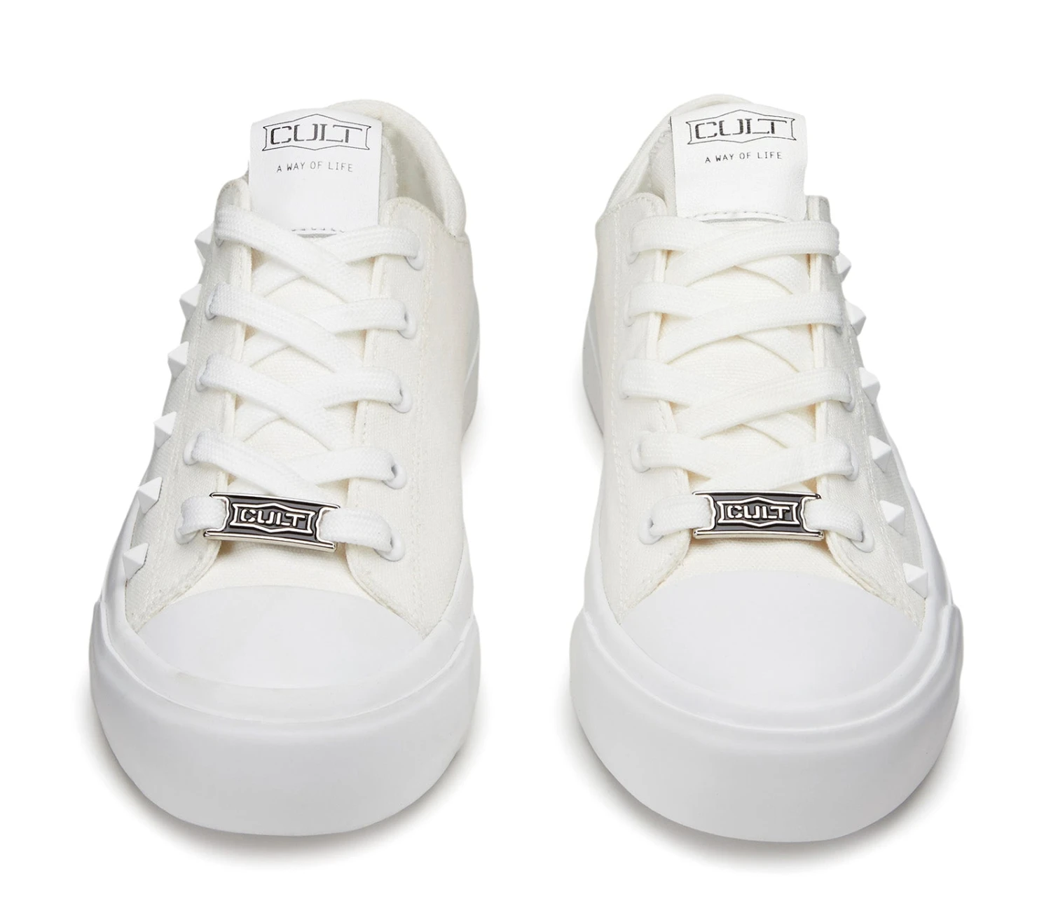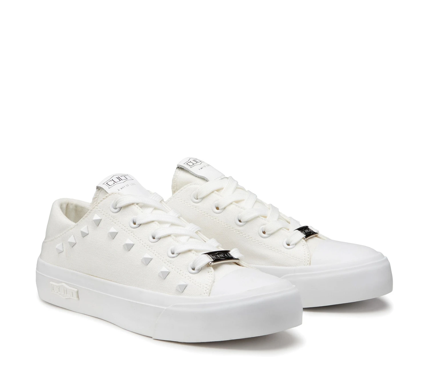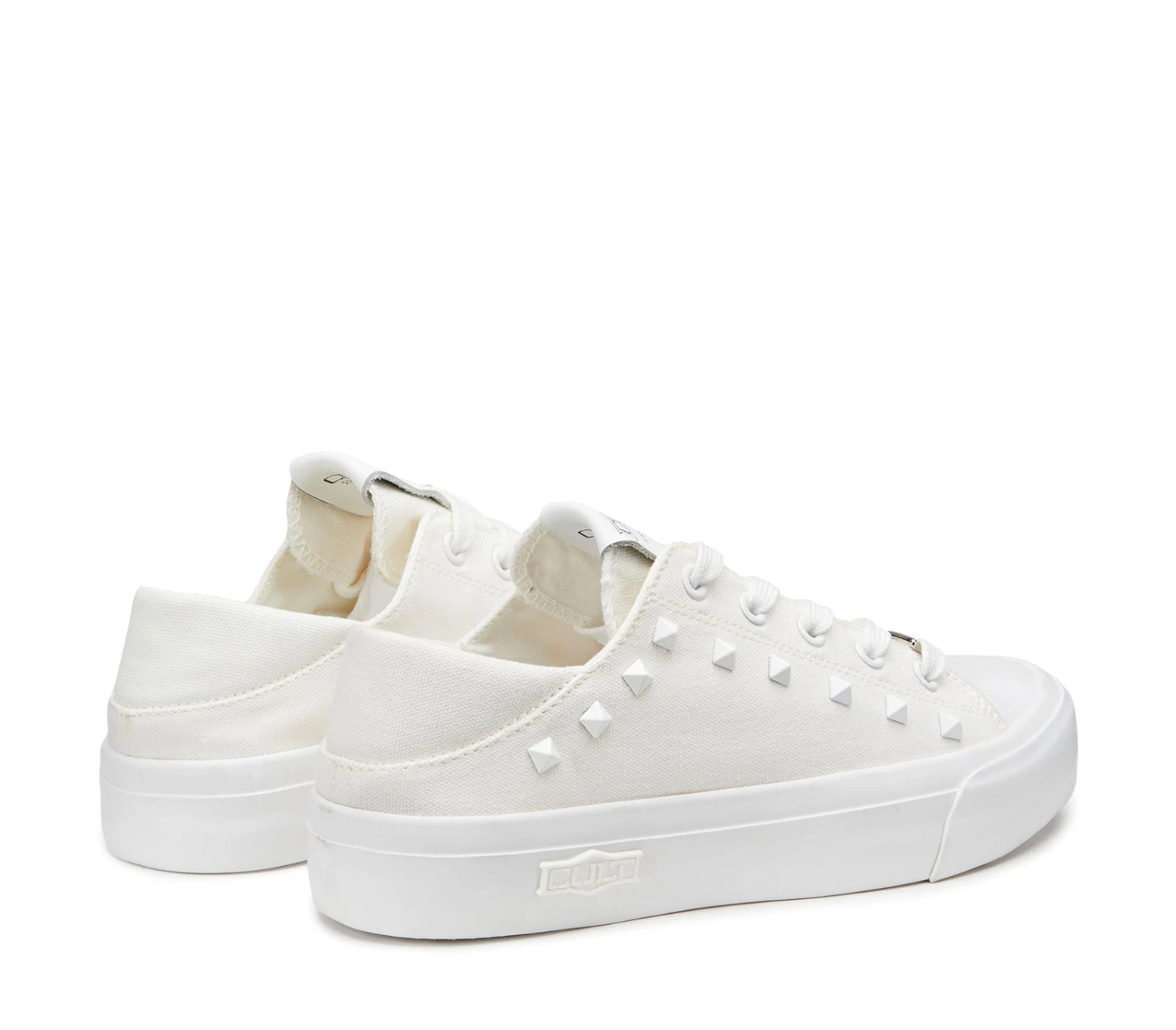 Questa stagione, Cult reinventa le classiche sneakers in canvas bianco con comode suole e punta in gomma. Rifinite con un’affascinante e briosa decorazione con borchie piramidali sur ton e dettagli logati che sono in grado di impreziosire qualsiasi outfit casual.