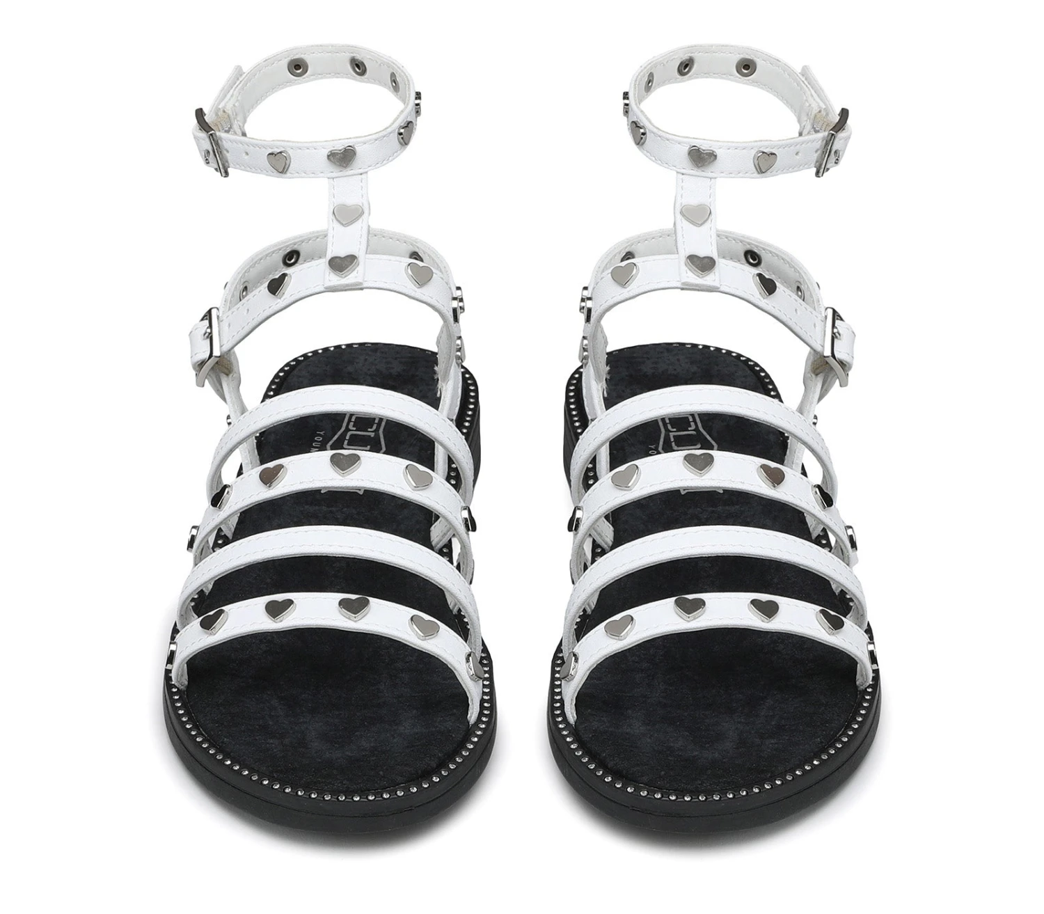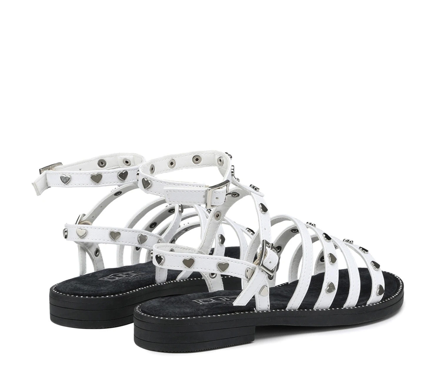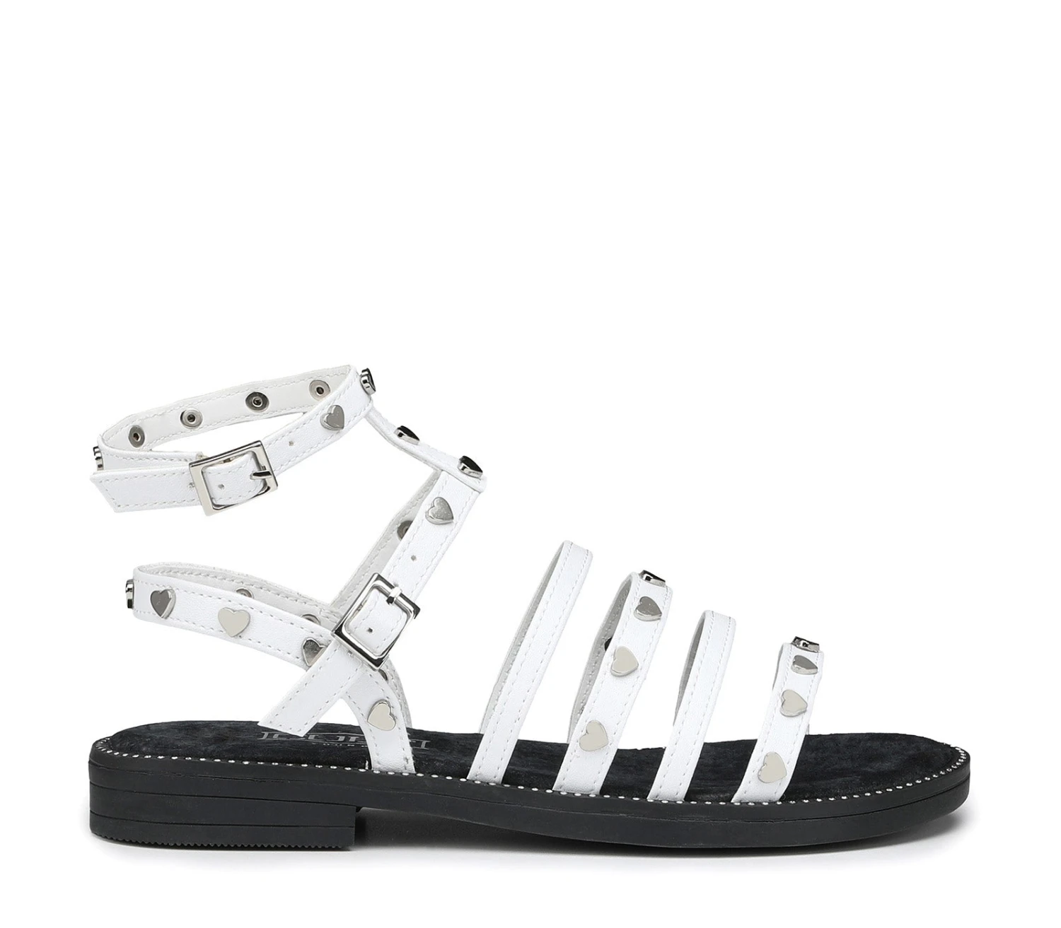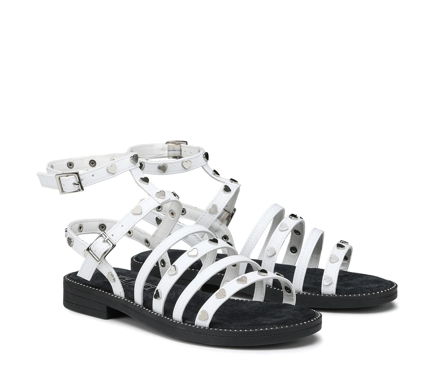 Per i più piccoli modaioli Cult Kids firma questi sandali in eco pelle con multi fascette imprezziosite da borchie a forma di cuore. Appoggiati su una suola in gomma leggrissima, si faranno regolare per una calzata perfetta grazie alla chiusura con doppia fibbia laterale.