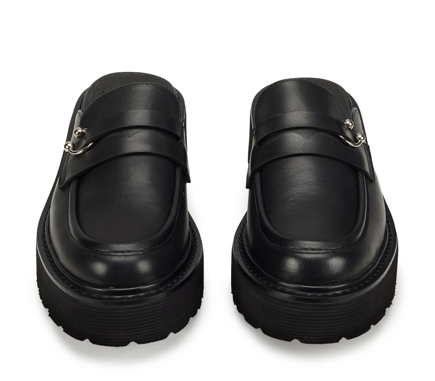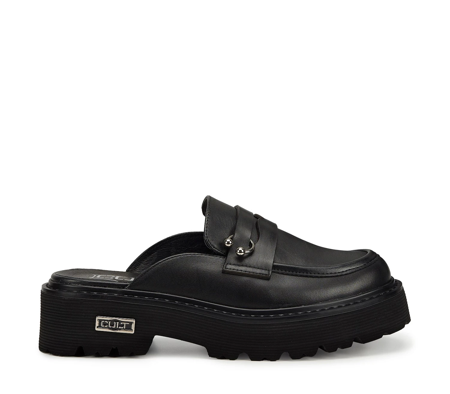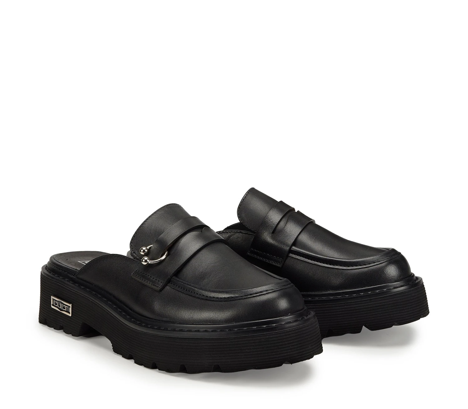Lasciatevi conquistare dal trend dei sabot dal design ibrido con il modello Slash proposto da Cult per questa stagione. Realizzati in pelle nera liscia, presentano una classica mascherina da mocassino impreziosita con un pearcing e poggiano su una suola a carrarmato in EVA personalizzata con l’iconica targhetta metallica con il logo del brand.