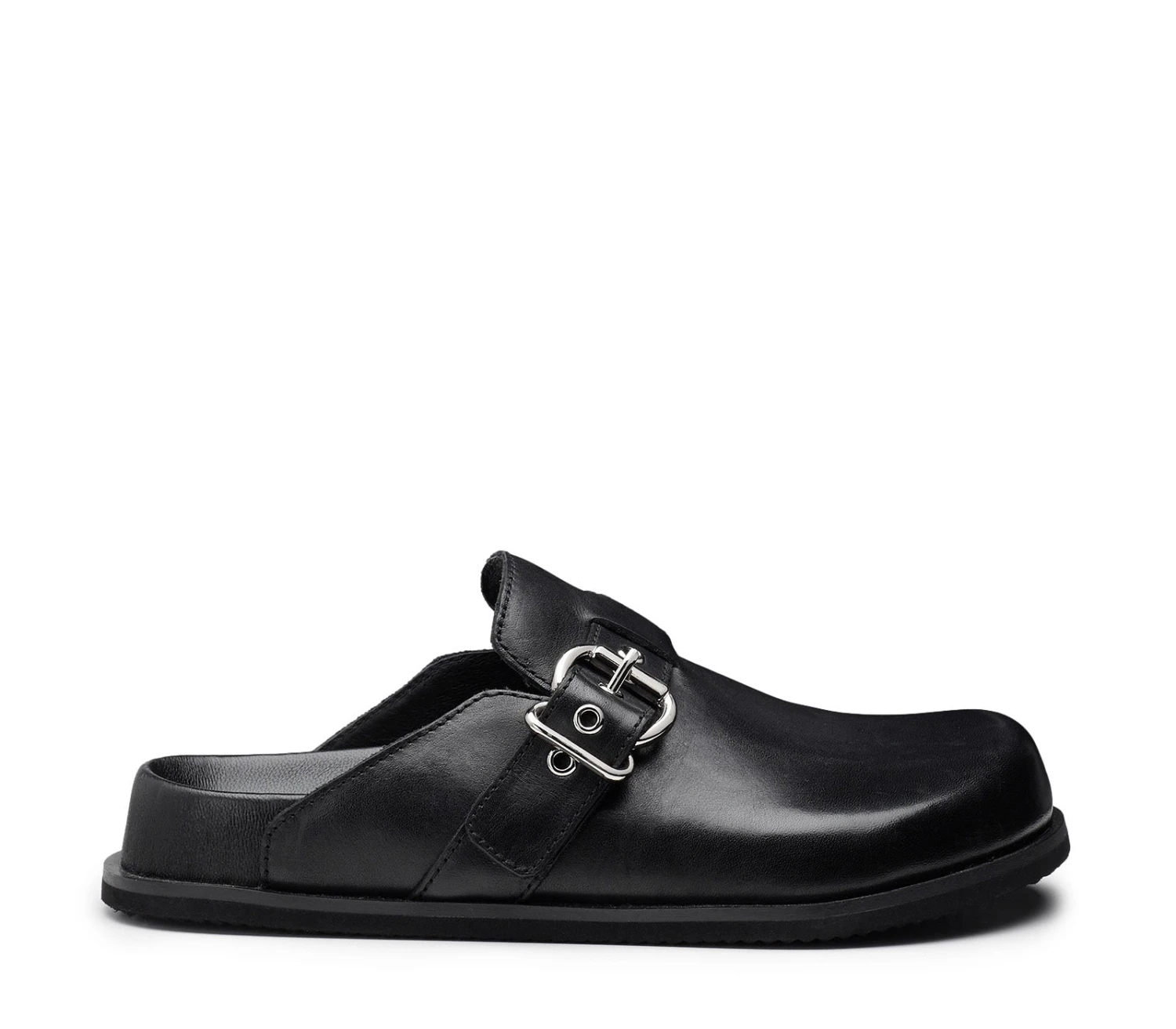 Realizzate in morbida pelle nera, queste slippers dal design minimal firmati Cult sono la nuova hit di collezione. Il modello è definito da una punta tonda e pronunciata è impreziosito con una fibia metallica per un look brillantemente contemporaneo.