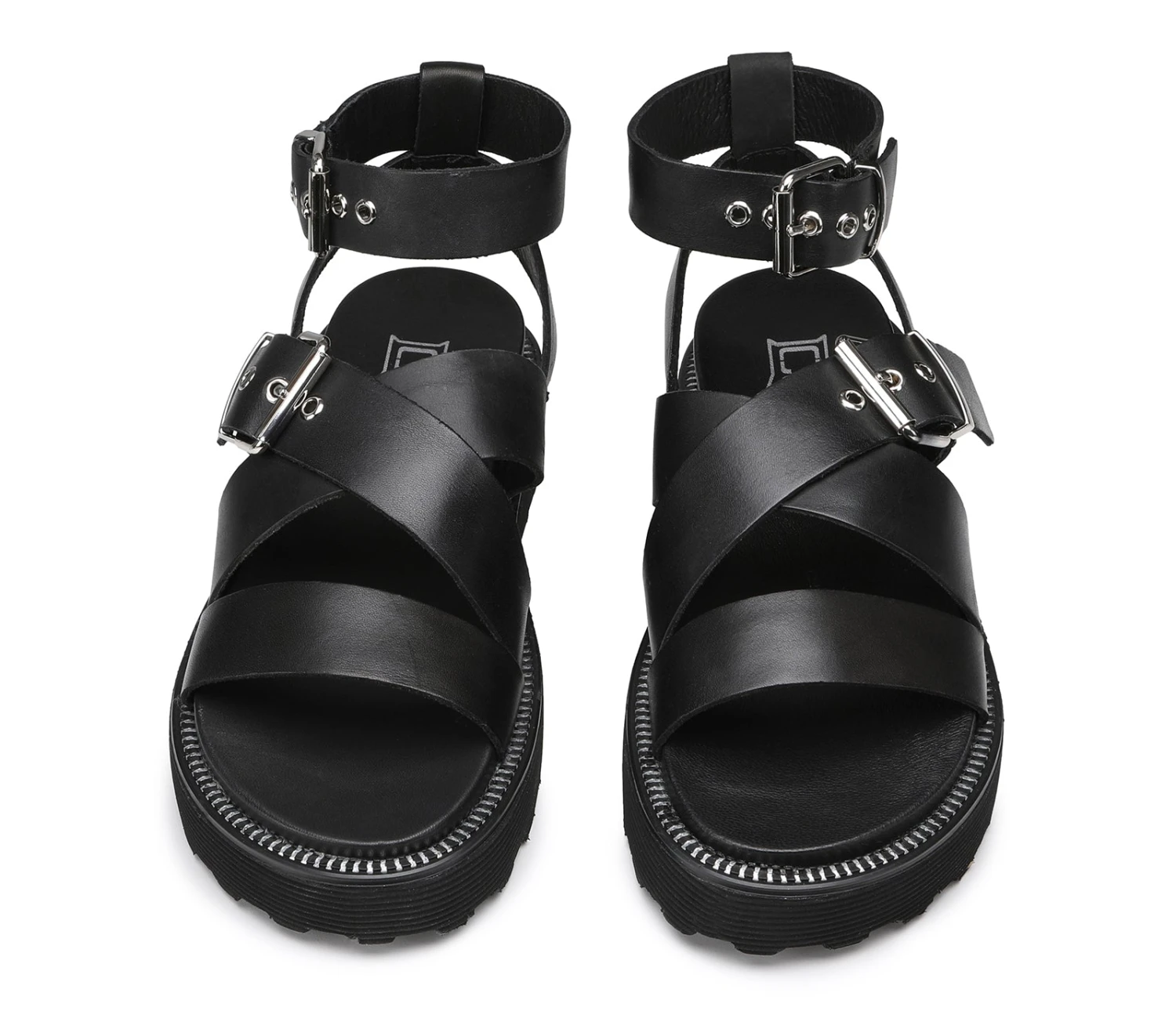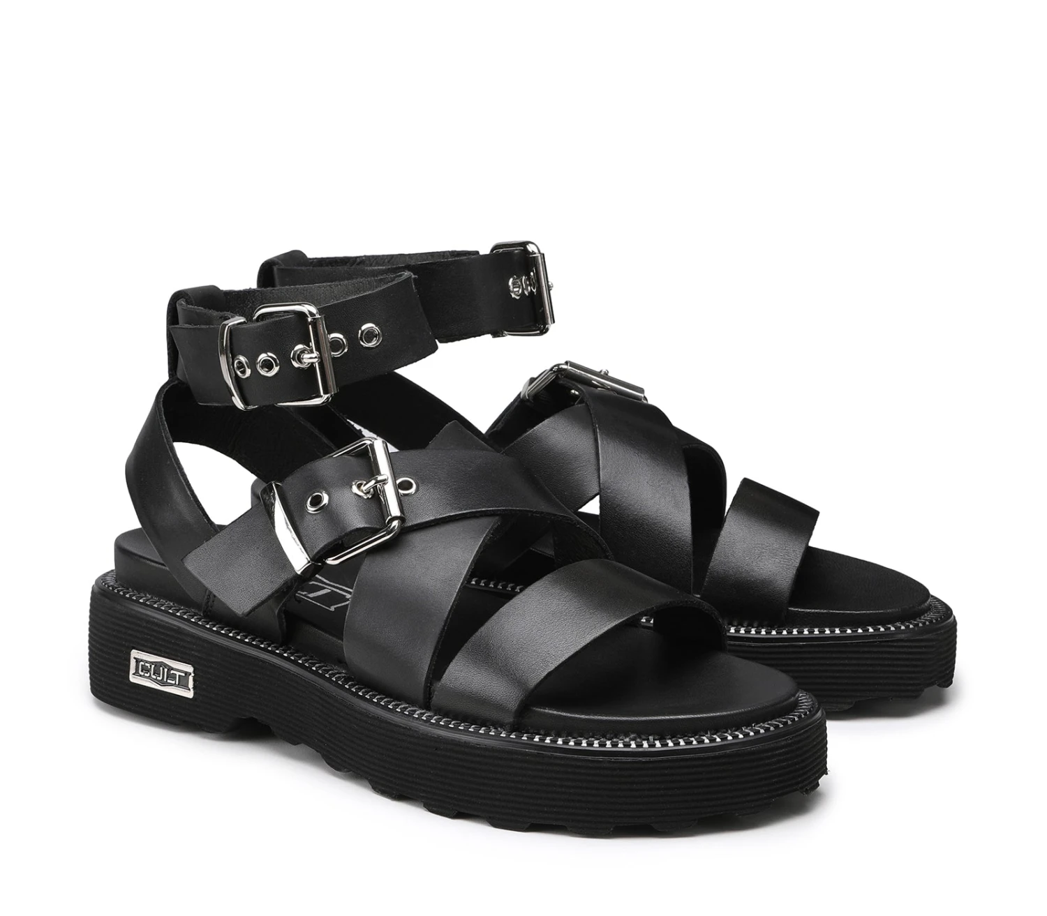 Immancabili nel guardaroba di stagione, i sandali chunky firmati Cult aggiungeranno carattere e stile ai vostri look estivi. Realizzati in pelle nera, presentano cinturini con fibbie metalliche e poggiano su una generosa suola in gomma. Sceglieteli sia con shorts sia con abiti.